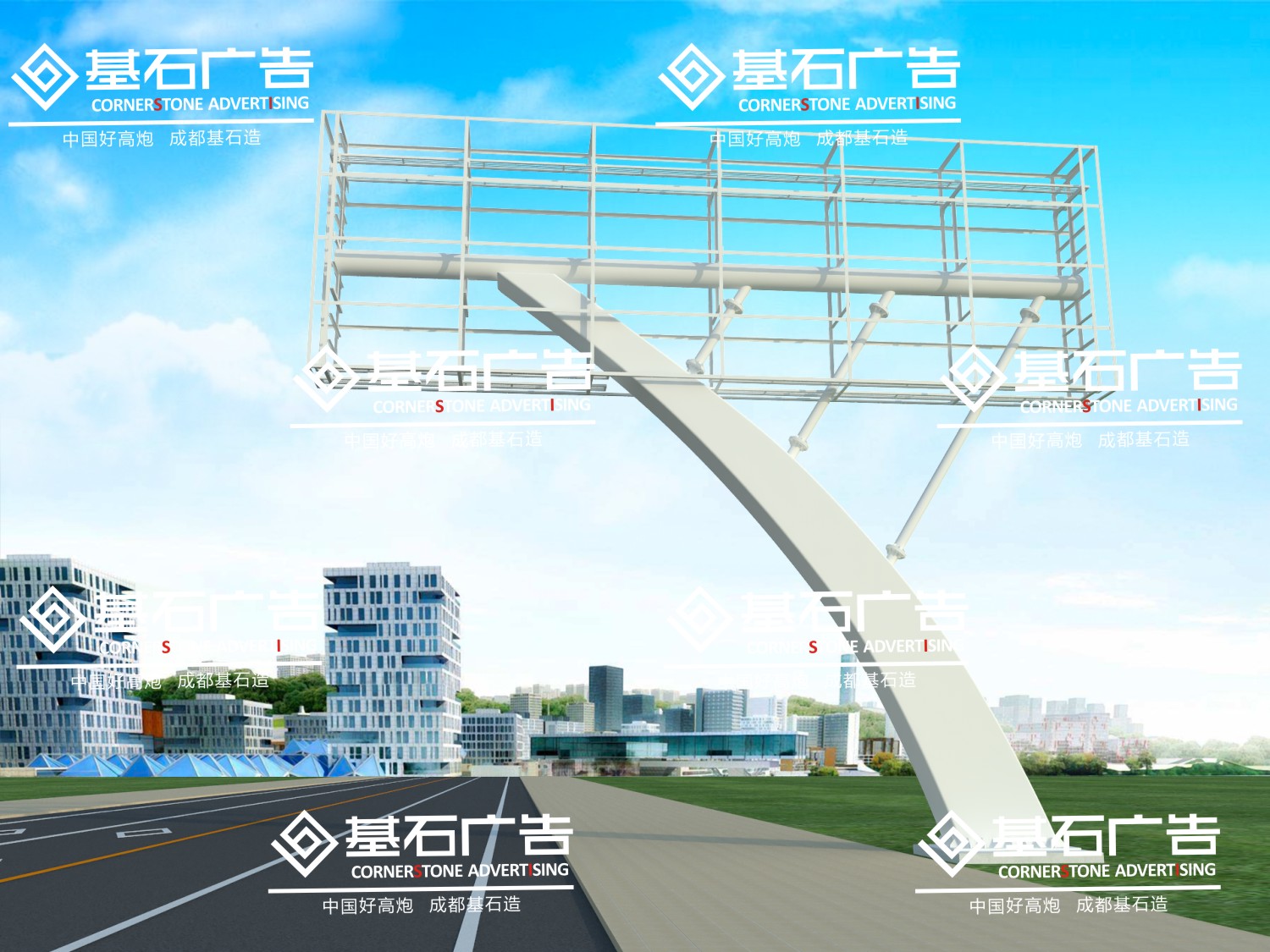 三柱跨街广告牌